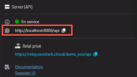 l’API est accessible uniquement depuis la machine locale (localhost).
