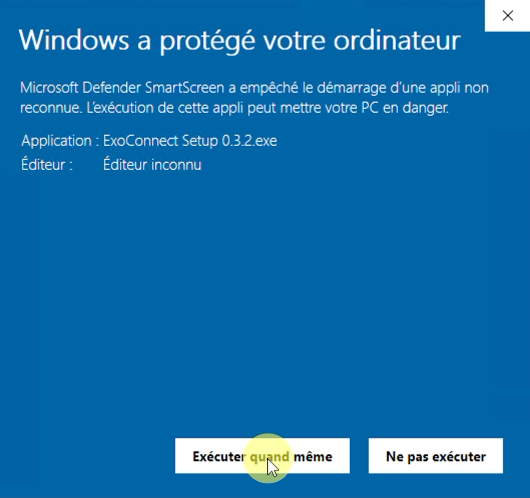 Lancez l’installateur : ExoConnect Setup <version>.exe;